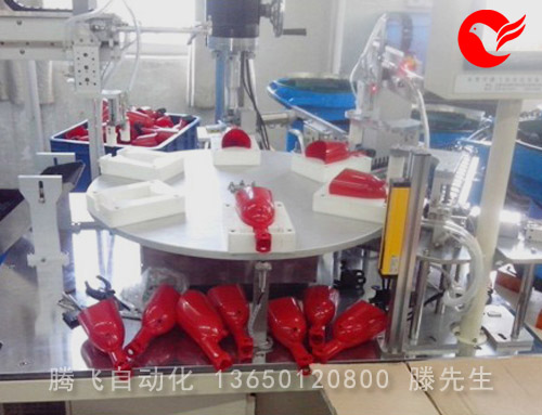1.机器功能:人工放大身入转盘夹具中,机器自动完成U型杆头装入大身内,公接头和母接头装入U型杆头,然后超声焊接, 然后机械手自动下料。